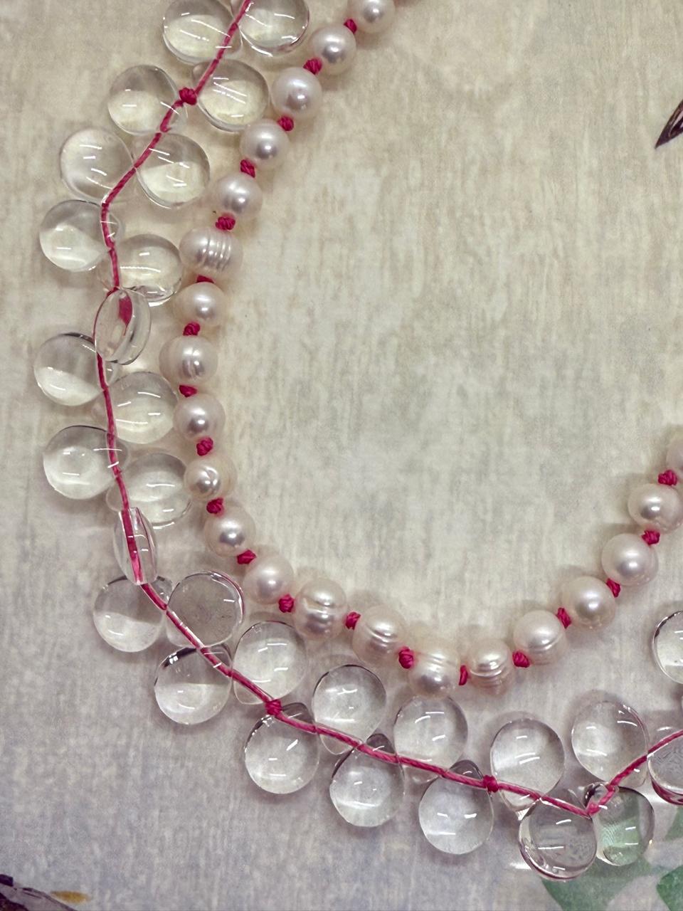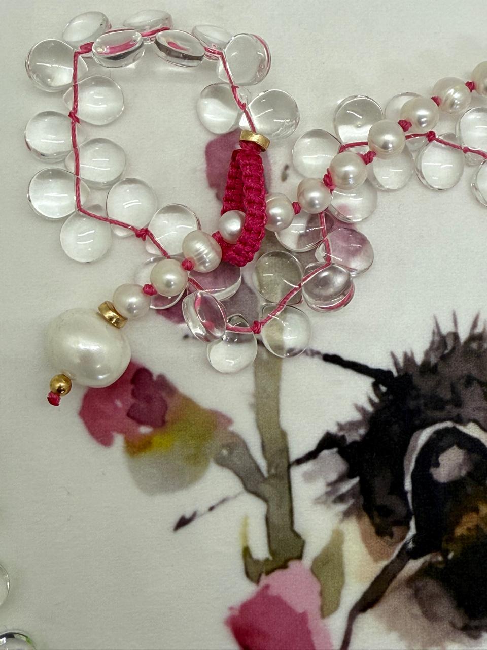 Merano glass teardrops , delicately crafted to resemble shimmering fish tears, are paired with lustrous white freshwater pearls for a soft, elegant touch.