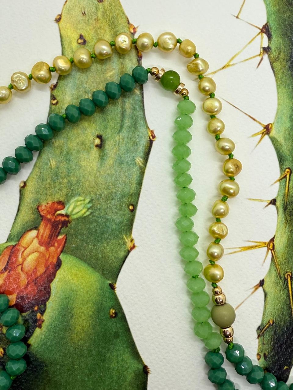 Featuring semi-precious butter green jade beads.