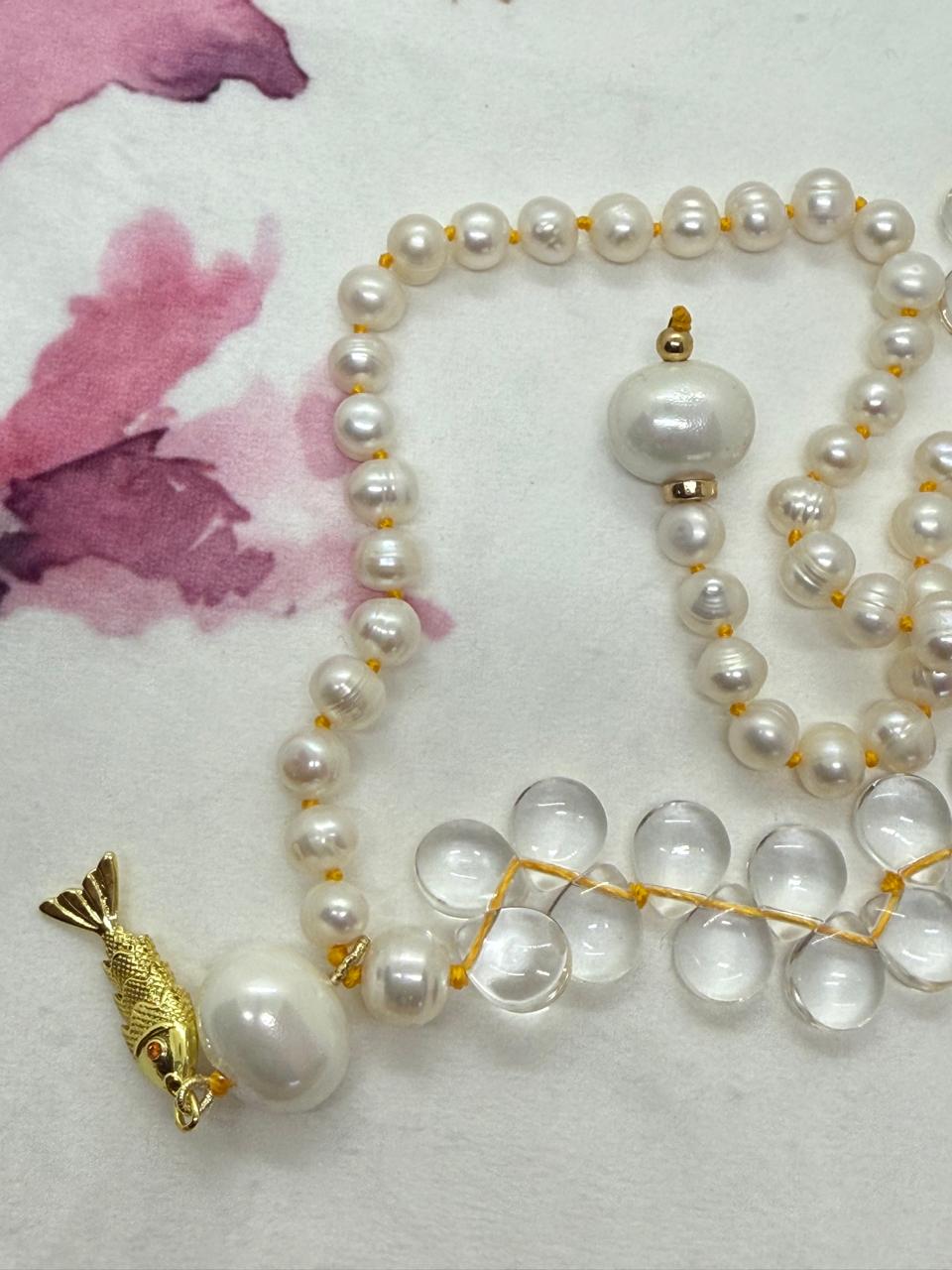 Adorned with an 18-karat gold-plated fish pendant, complete with a striking ruby eye, symbolising vitality and movement