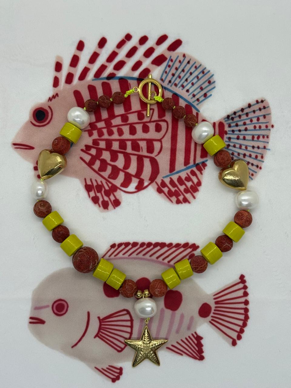 Features a handmade 18-karat gold-plated sea star as a striking focal charm.
