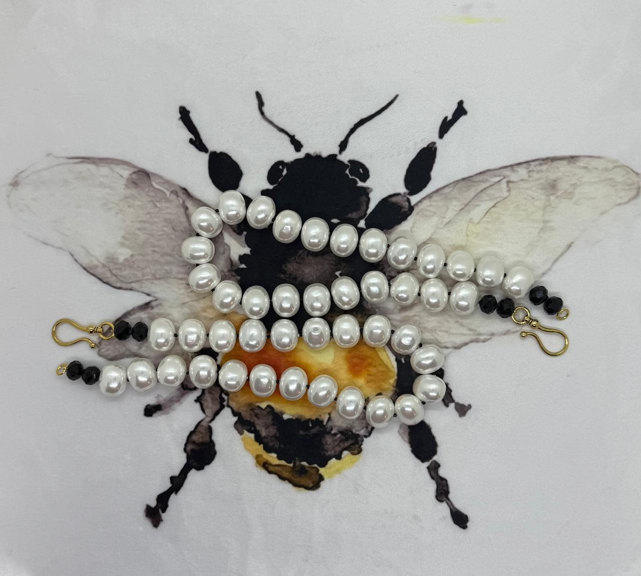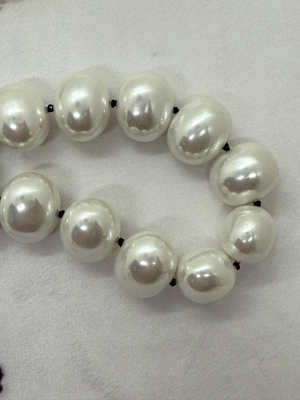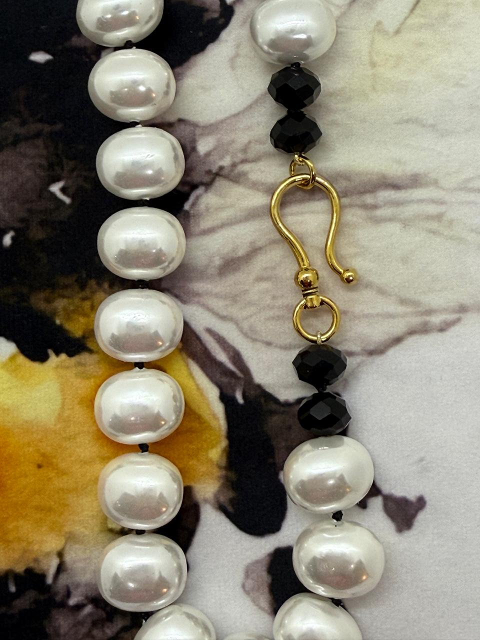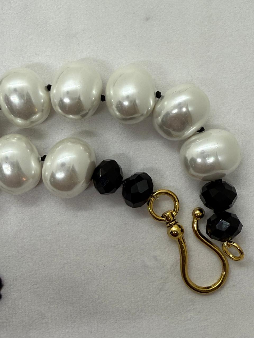 Knotted in black cotton thread, adding a modern, casual contrast to the luxe pearls.