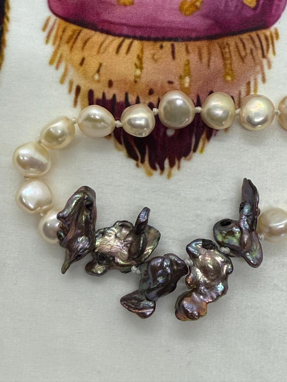 Intertwined with five elegant grey baroque freshwater pearls.