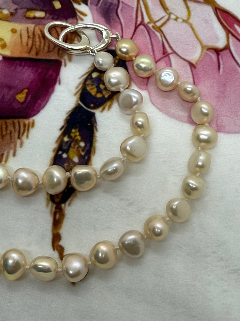 A graceful strand of the finest Japanese Sekai freshwater pearls, graded AA, shimmering with a soft, luminous lustre.